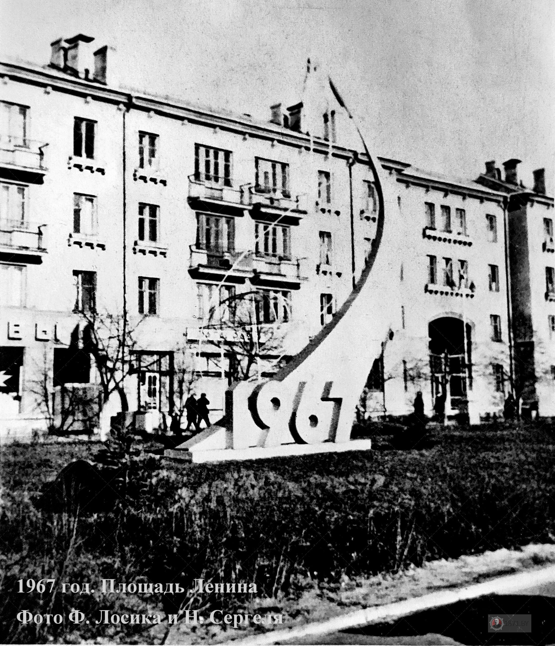 Барановичи. 1967-1968 г. Пл. Ленина, скульптурная композиц с ракетой "1967", 1967.