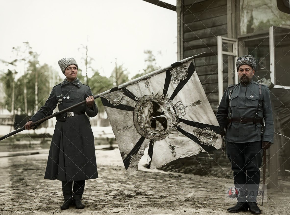 Барановичи. Чины 3-го Сибирского стрелкового полка с германским знаменем, 1915 год (110 лет назад).