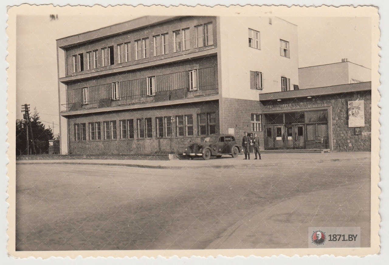 Первые месяцы оккупации города Барановичи, предположительно июнь-август 1941 года. Солдаты Вермахта у здания городской почты, сегодня месте этого здания находится…